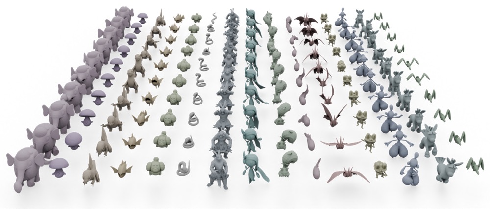 We collect a dataset comprises hundreds of characters spanning a broad spectrum of species and morphologies, including humanoids, quadrupeds, birds, reptiles, fishes, and insects. Each character is paired with artist-designed skeletal animations, resulting in a total of 28k motions and 4.4 million frames.